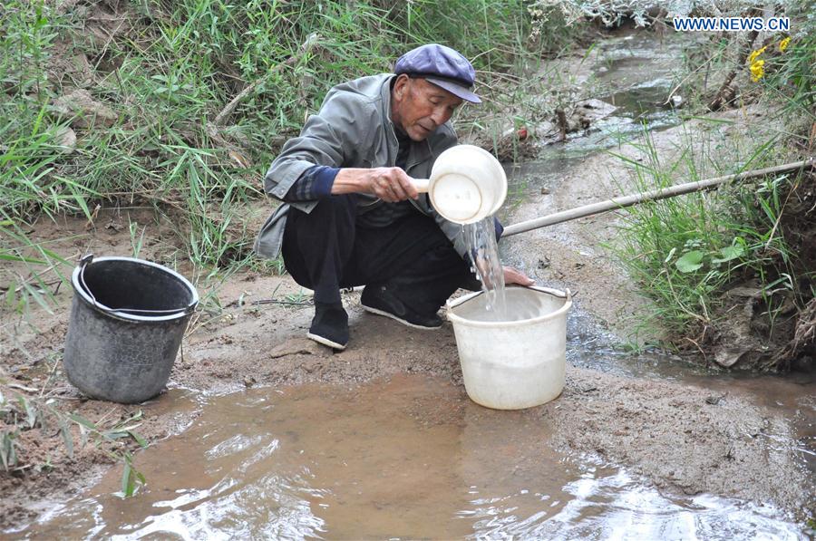 Xu Zhiqiang, de 68 a?os, recoge agua para regar árboles plantados en una monta?a de la aldea Zhangchuan en el condado Tongwei, provincia de Gansu, el 23 de agosto de 2016. Xu Zhiqiang y su hermano gemelo Xu Zhigang llevan 48 a?os plantando voluntariamente árboles en las colinas estériles en la meseta Loess. Más de 350 mu (23 hectáreas) de tierras yermas han vuelto a ser verdes gracias la plantación de más de 80.000 árboles y flores. Los esfuerzos de los hermanos no sólo ayudan a crear belleza natural sino también a mejorar el ecosistema local. (Xinhua/Guo Gang)