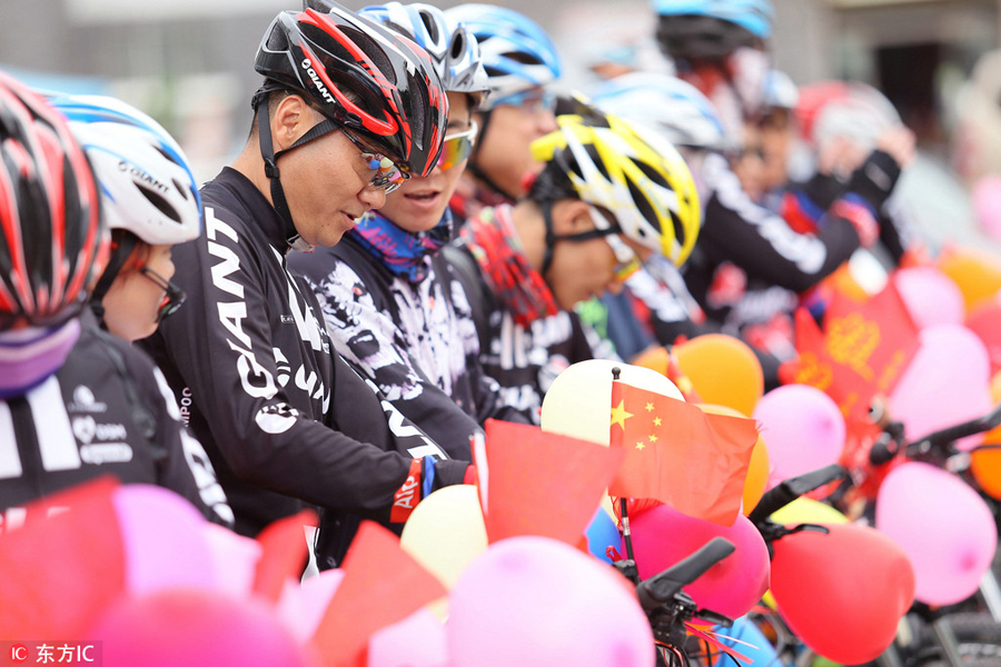 Los ciclistas se preparan para el viaje en el condado de Kuqa, Aksu, Xinjiang, el 28 de agosto de 2016. [Foto / IC]