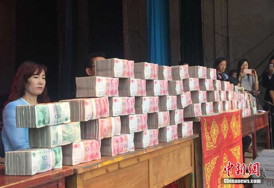 Alrededor de 5,6 millones de yuanes (850.000 dólares) se distribuyeron el sábado entre 80 familias que participaron en un programa de plantación de árboles en un pueblo del condado de Lintao, en la provincia de Gansu. [Foto / Chinanews.com]