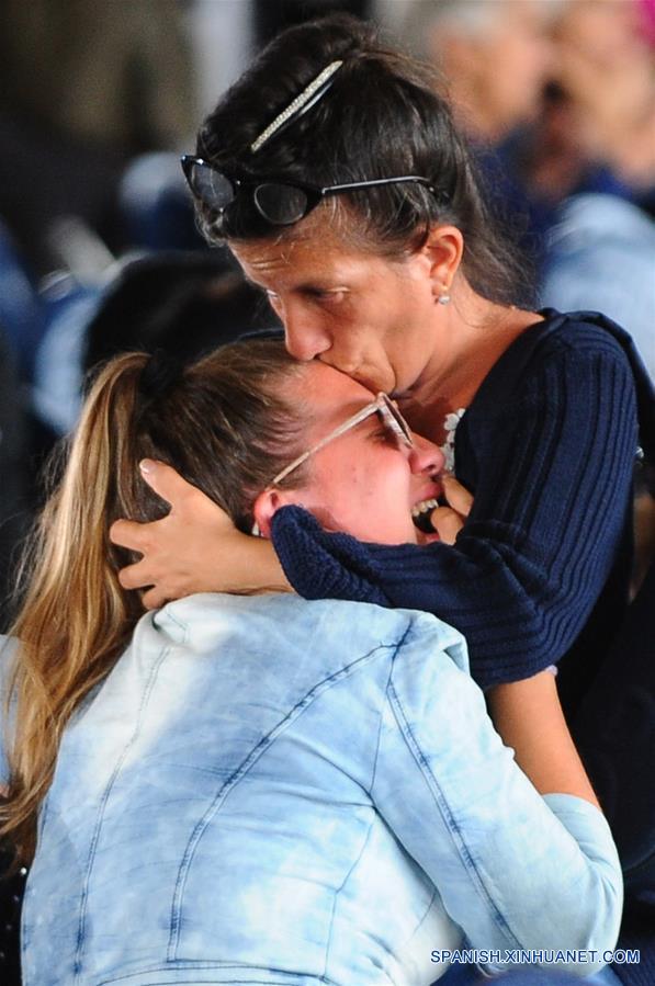 Familiares reaccionan durante el funeral de algunas de las víctimas del sismo, en Amatrice, Italia, el 30 de agosto de 2016. Los funerales de las víctimas del sismo del miércoles pasado en Amatrice fueron llevados a cabo el martes en su villa de Lazio. (Xinhua/Italy Photo Press/ZUMAPRESS)