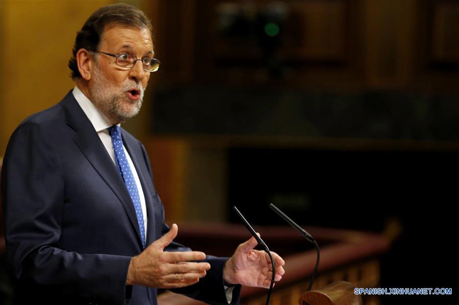 El jefe del Gobierno espa?ol en funciones, Mariano Rajoy, pronuncia un discurso durante el debate de investidura llevado a cabo en el Congreso de los Diputados, en la ciudad de Madrid, capital de Espa?a, el 30 de agosto de 2016. El jefe del Gobierno espa?ol en funciones, Mariano Rajoy, pidió el voto del Congreso de los Diputados para ser aprobado para un nuevo periodo en el cargo. En caso de que el plazo (2 de septiembre) se cumpla sin que se haya acordado una investidura común para formar Gobierno, se recurrira a la realización de nuevas elecciones generales por tercera ocasión, programadas para el 25 de diciembre. (Xinhua/Juan Carlos Rojas/NOTIMEX)