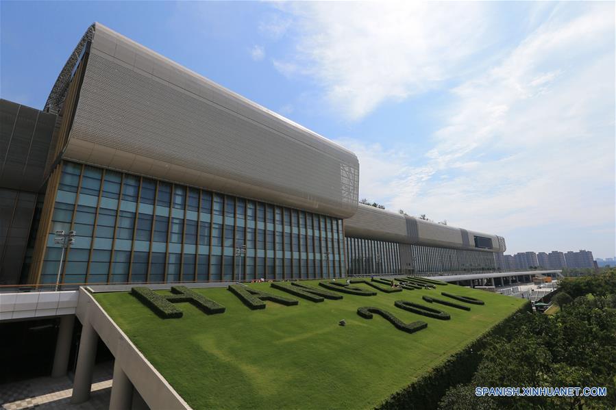 Exterior del Centro Internacional de Exposiciones de Hangzhou, sede de la cumbre del Grupo de los 20 (G20) en Hangzhou, capital de la provincia de Zhejiang, en el este de China, el 31 de agosto de 2016. La cumbre del G20 se llevará a cabo el 4 y 5 de septiembre en Hangzhou. (Xinhua/Xing Guangli)