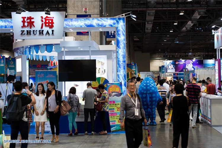 Personas visitan la 4 Exposición Internacional de Viajes (Industria) de Macao, en la Región Administrativa Especial de Macao, en el sur de China, el 2 de septiembre de 2016. La exposición de tres días de duración, con la participación de unos 200 expositores de 28 países y regiones, abrió el viernes en Macao.