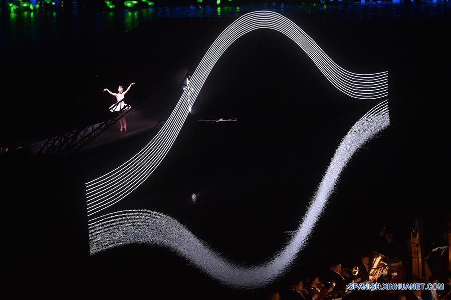 Una artista realiza ballet durante una gala nocturna para la Cumbre del Grupo de los Veinte (G20), en el área escénica del Lago Oeste en Hangzhou, capital de la provincia de Zhejiang, en el este de China, el 4 de septiembre de 2016. (Xinhua/Huang Zongzhi)