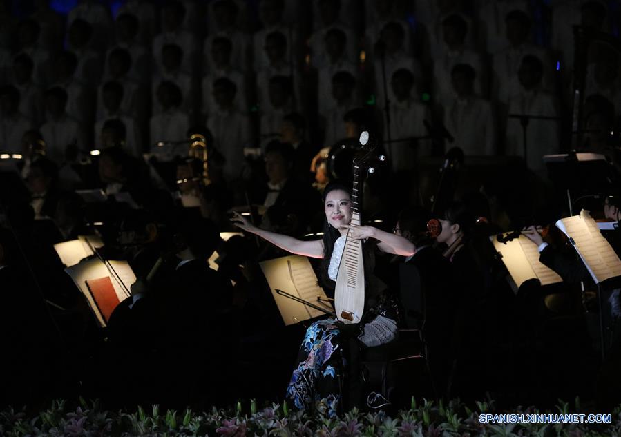 Artistas actúan durante una gala nocturna para la Cumbre del Grupo de los Veinte (G20), en el área escénica del Lago Oeste en Hangzhou, capital de la provincia de Zhejiang, en el este de China, el 4 de septiembre de 2016. (Xinhua/Ma Zhancheng)