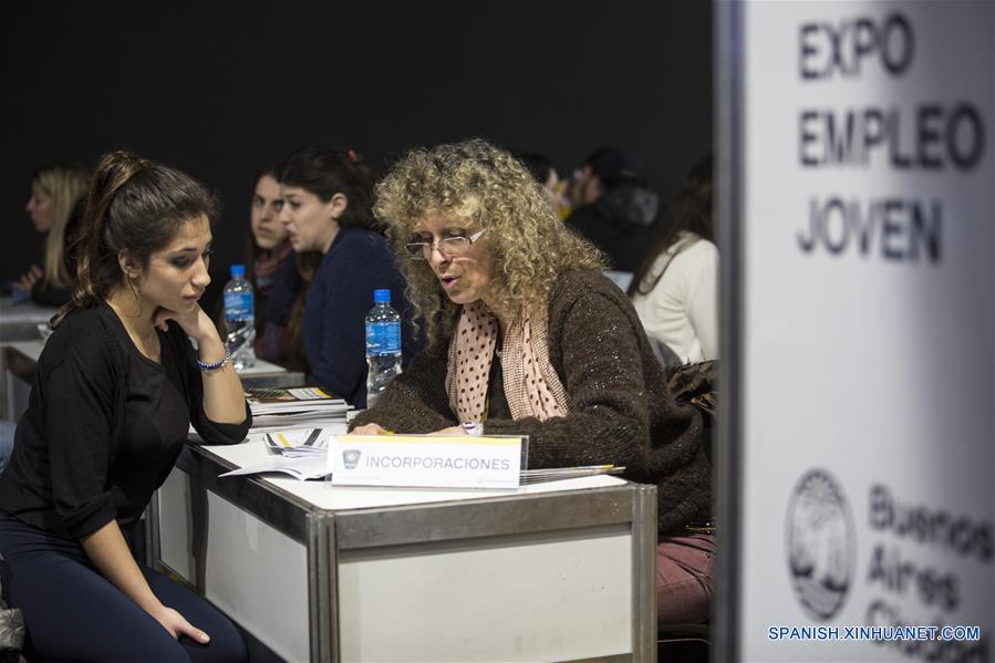 Jóvenes llenan solicitudes de empleo durante la Expo Empleo Joven, en Buenos Aires, capital de Argentina, el 7 de septiembre de 2016. Una multitud de jóvenes asistió el miércoles a una exposición destinada al grupo de 18 a 29 a?os de edad que busca empleo, con la presencia, además, de un centenar de empresas nacionales y extranjeras que quieren cubrir vacantes laborales. La exposición, que culmina el jueves, es organizada por la Alcaldía local y está destinada a jóvenes estudiantes y graduados de carreras terciarias y universitarias que buscan trabajo o desean conocer más acerca de las posibilidades que ofrece el mercado laboral, según los organizadores. (Xinhua/Martín Zabala)