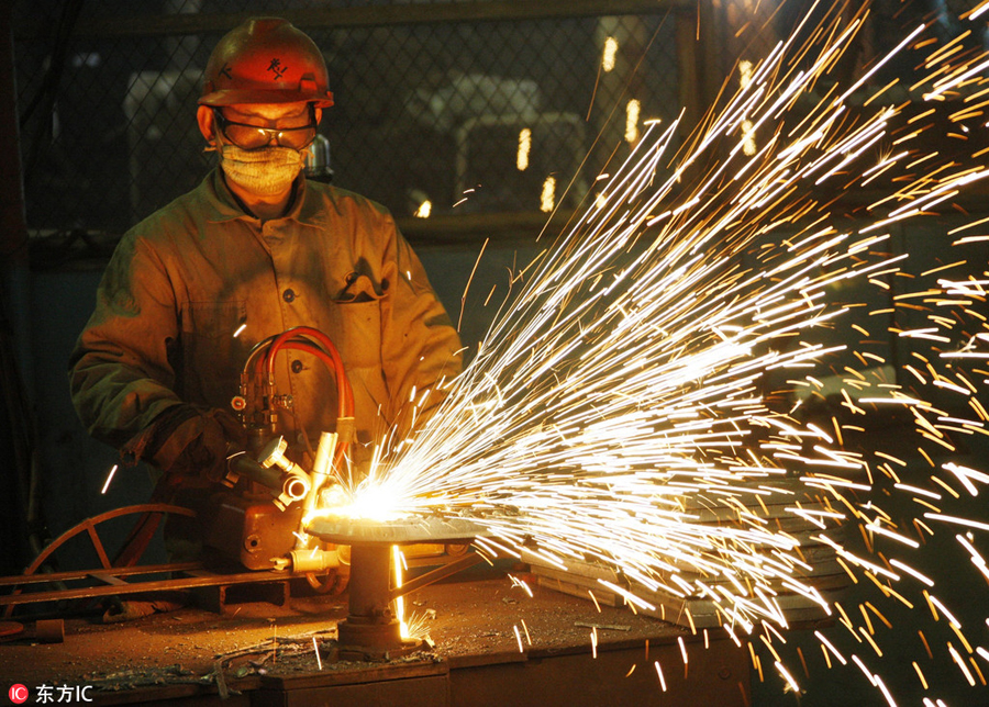 Trabajador de una empresa de equipos de maquinaria de Huaibei, provincia de Anhui. [Foto: IC]