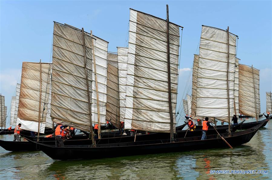 YUNNAN, septiembre 13, 2016 (Xinhua) -- Botes zarpan para pescar en el Lago Dianchi en Kunming, capital de la provincia de Yunnan, en el suroeste de China, el 13 de septiembre de 2016. El Lago Dianchi abrió el martes oficialmente la pesca. Este a?o, la pesca se divide en dos periodos. Durante el primer periodo del 13 al 24 de septiembre, los pescadores pueden capturar grandes peces, Mientras que durante el segundo periodo del 29 de septiembre al 23 de octubre, ellos pueden pescar morralla y camarones. (Xinhua/Lin Yiguang)