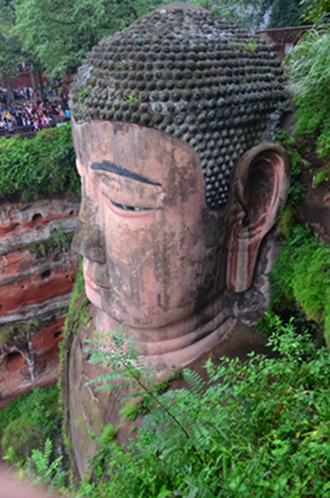 Sichuan,14/09/2016 (El Pueblo en Línea) - Ciudad de Leshan, Sichuan. En la ma?ana del 13 de septiembre de 2016, los periodistas extranjeros de visita en la ciudad de Leshan de Sichuan llegaron al área Escénica del Gran Buda de Leshan, la estatua esculpida en piedra de Buda más alta del mundo. Esta estatua fue construida durante la dinastía Tang. Está tallada en un acantilado que se encuentra en las confluencias de los ríos Min Jiang, Dadu y Qingyi, en la parte sur de la provincia china de Sichuan, cerca de la ciudad de Leshan. La escultura está frente al monte Emei mientras el agua de los ríos corre por los pies de Buda.