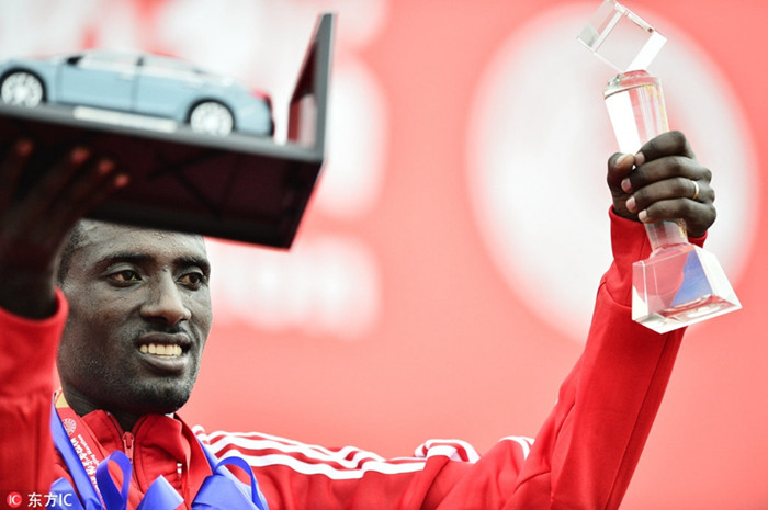 Girmay Birhanu Gebru de Etiopía logró el título de campeón durante el Maratón Internacional de Beijing con 2 horas 11 minutos 9 segundos, el 17 de septiembre de 2016.