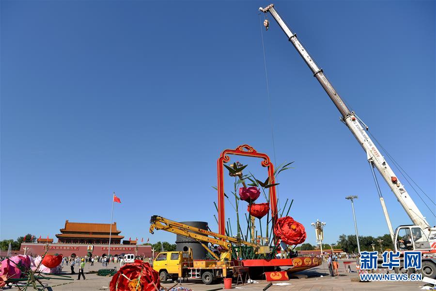 Beijing comienza a erigir adorno floral gigante en la Plaza Tian'anmen (3)