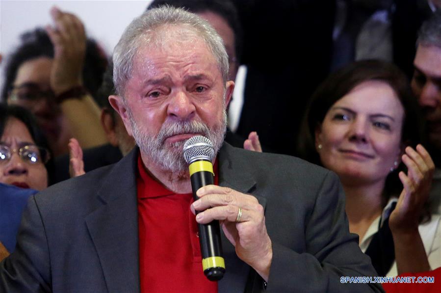 Imagen del 15 de septiembre de 2016 del expresidente brasile?o, Luiz Inácio Lula da Silva, reaccionando durante una conferencia de prensa sobre la denuncia del Ministerio Público Federal contra él y su esposa, Marisa Letícia, por casos de corrupción, en Sao Paulo, Brasil. De acuerdo con información de la prensa local, el juez federal brasile?o, Sergio Moro, acepta investigar a Luiz Inácio Lula da Silva por presunta corrupción y lavado de dinero por el caso de corrupción en la empresa Petrobras. Según Sergio Moro existen "suficientes indicios de autoría y materialidad" en la denuncia que la fiscalía presentó la semana pasada en una conferencia de prensa. (Xinhua/Rahel Patrasso)