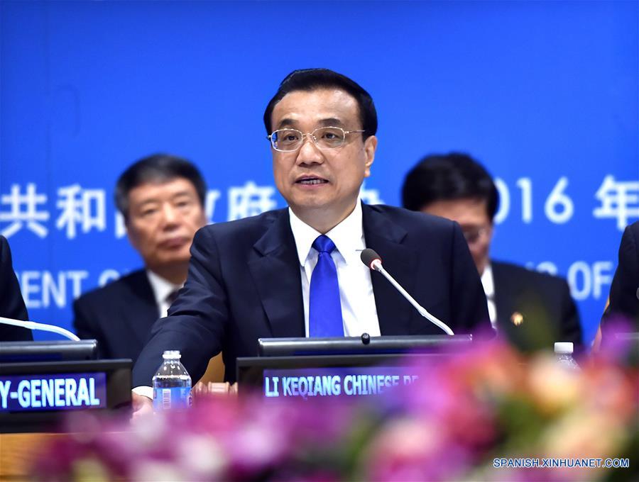 El primer ministro de China, Li Keqiang, preside una mesa redonda sobre los Objetivos de Desarrollo Sostenible (ODS), en la sede de la Organización de las Naciones Unidas (ONU), en Nueva York, Estados Unidos de América, el 19 de septiembre de 2016. (Xinhua/Li Tao)