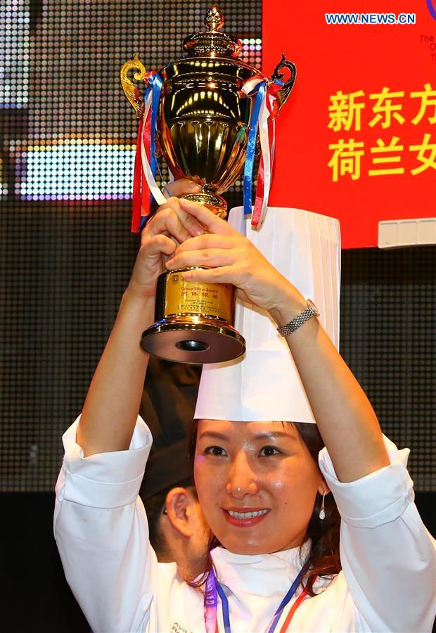 Un ganador muestra su trofeo durante el Campeonato Mundial de Cocina China que se celebró en Rotterdam, Holanda, del 19 al 21 de septiembre. (Foto: Gong Bing)