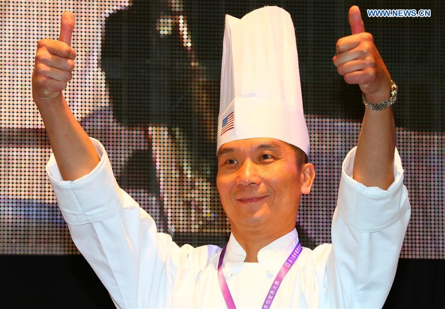 Un ganador muestra su trofeo durante el Campeonato Mundial de Cocina China que se celebró en Rotterdam, Holanda, del 19 al 21 de septiembre. (Foto: Gong Bing)