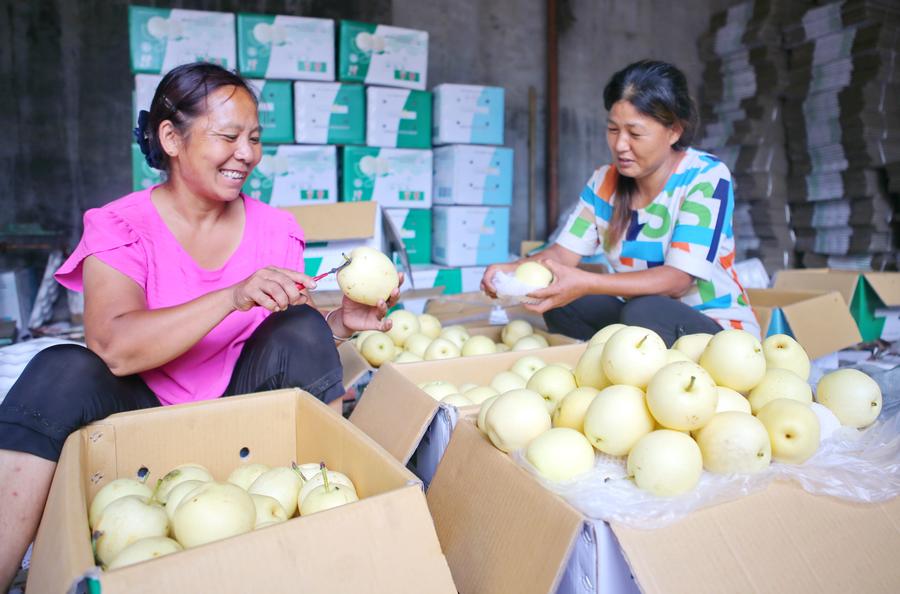 Peras recién recogidas en Hebei. [Foto: Xinhua]