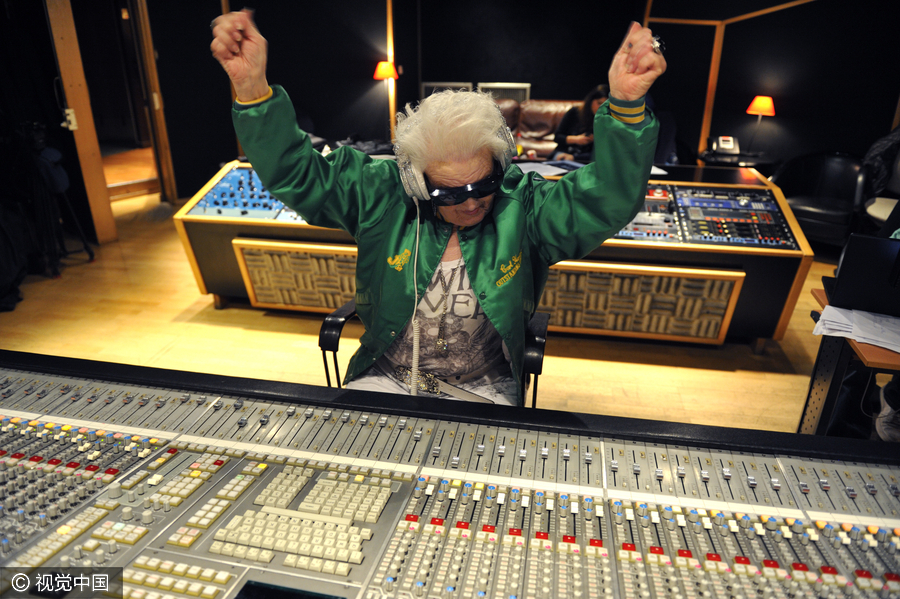 La DJ británica Ruth Flowers, de 69 a?os de edad, mezcla música en un estudio de grabación en París, el 3 de marzo del 2010. [Foto: VCG]