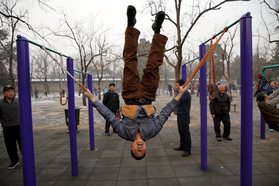 Ancianos se ejercitan en un parque de Beijing, el 29 de noviembre del 2015. [Foto: VCG]