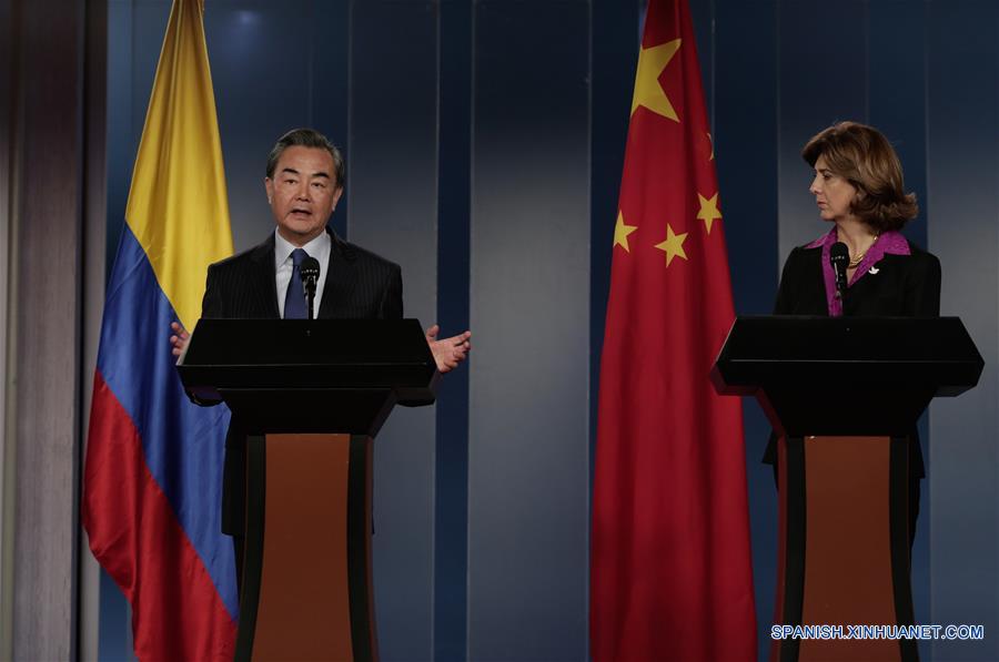 BOGOTA, octubre 9, 2016 (Xinhua) -- El ministro de Relaciones Exteriores de China Wang Yi (i) y su homóloga colombiana María Angela Holguín Cuellar, participan en una conferencia de prensa durante su visita en Bogotá, Colombia, el 7 de octubre de 2016. (Xinhua/Jhon Paz)