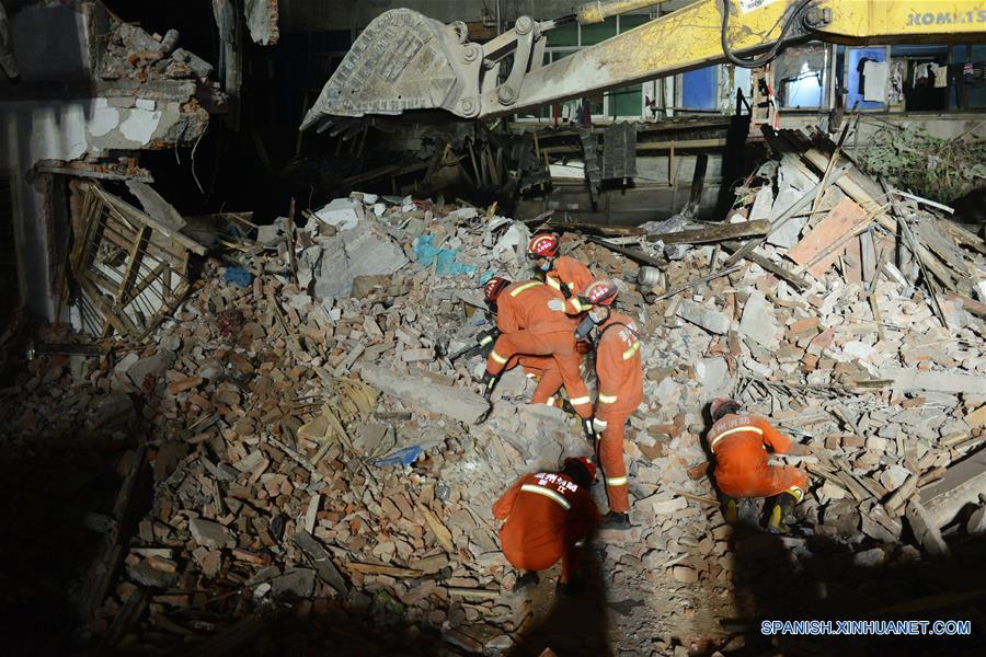 Rescatistas buscan sobrevivientes en el sitio de un accidente en el distrito industrial Lucheng en la Ciudad de Wenzhou, en la provincia de Zhejiang, en el este de China, el 10 de octubre de 2016. Un total de 22 personas ha fallecido en el derrumbe de varios edificios residenciales ocurrido en la ma?ana del lunes en el distrito industrial de Lucheng de la ciudad de Wenzhou. (Xinhua/Str)
