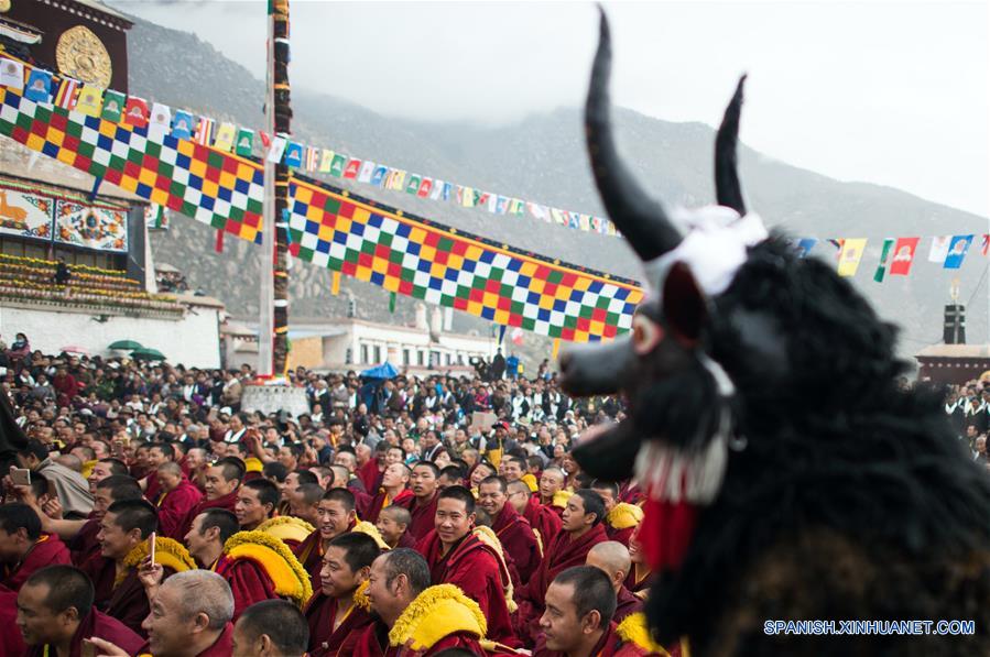 Una ceremonia es llevada a cabo con motivo del 600 aniversario de la fundación del Monasterio Drepung, en Lhasa, en la región autónoma del Tíbet, en el suroeste de China, el 12 de octubre de 2016. Construido en 1416 en las afueras de Lhasa, el Monasterio Drepung es el más grande e influyente monasterio de la secta Gelug, una rama del budismo tibetano. (Xinhua/Purbu Zhaxi)