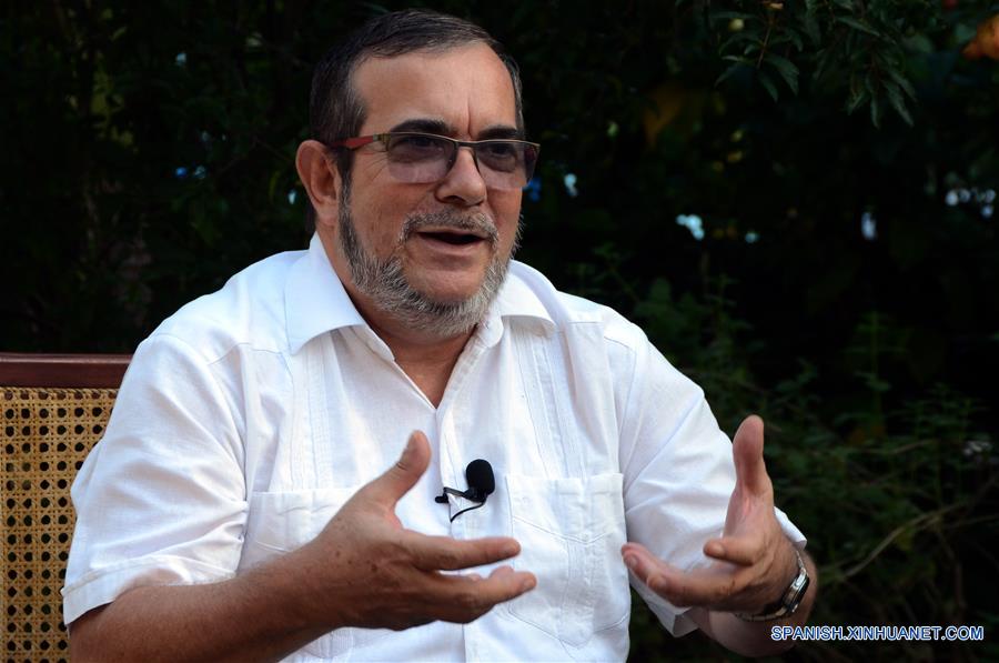 Imagen del 11 de octubre de 2016 del comandante de las Fuerzas Armadas Revolucionarias de Colombia (FARC), Rodrigo Londo?o, alias Timoleón "Timochenko" Jiménez, ofreciendo una entrevista exclusiva a la Agencia de Noticias Xinhua, en La Habana, Cuba. Un período "corto", donde ambas partes han acordado escuchar a todos los sectores de la sociedad con sus inquietudes y propuestas que tributen al pacto firmado el pasado 26 de septiembre en Cartagena de Indias, aseguró el máximo líder de la guerrilla, Rodrigo Londo?o, alias Timoleón "Timochenko" Jiménez. El comandante de las FARC agregó que desde el 3 de octubre las partes vienen trabajando, intercambiando ideas con actores políticos colombianos y de la comunidad internacional, en la búsqueda de una solución lo más pronto posible para este impasse. (Xinhua/Joaquín Hernández)