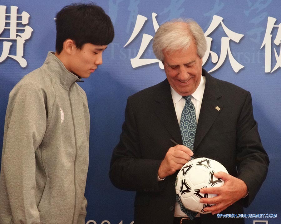 El presidente de Uruguay, Tabaré Vázquez, dio una conferencia ayer jueves en la Universidad de Tsinghua de Beijing para hablar de los peligros del tabaco y la experiencia de su país, que ha logrado reducir el consumo a través de medidas normativas. (Xinhuanet/Gong Xuemei)