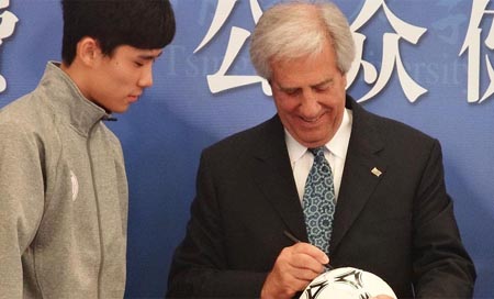 BEIJING, 14 oct (Xinhua) -- El presidente de Uruguay, Tabaré Vázquez, dio una conferencia ayer jueves en la Universidad de Tsinghua de Beijing para hablar de los peligros del tabaco y la experiencia de su país, que ha logrado reducir el consumo a través de medidas normativas.