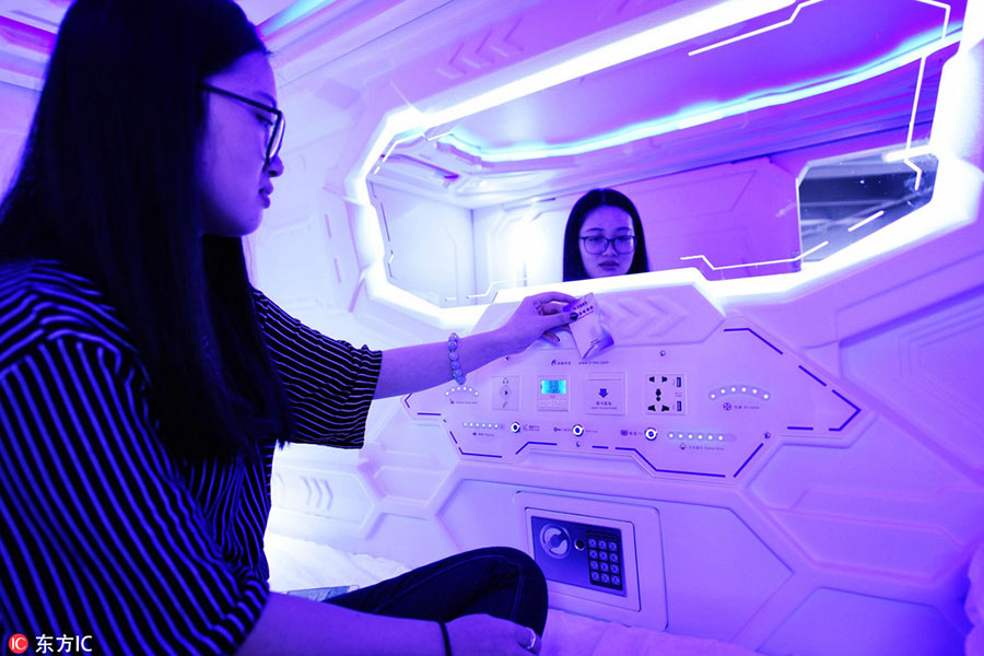 Un espacio en forma de cápsula espacial se ofrece a los empresarios de un centro de desarrollo de negocios ubicado en la ciudad de Hangzhou, capital de la provincia de Zhejiang. El aparato, de 1,2 metros de ancho y 2 metros de largo, fabricado por una empresa de Guangzhou, permite a los empresarios disfrutar de ciertos lujos laborales, como un colchón viscoelástico, edredón de seda y un sistema de aire acondicionado similar al que utiliza en las cabinas de los aviones. 18 de octubre del 2016. [Foto: IC]