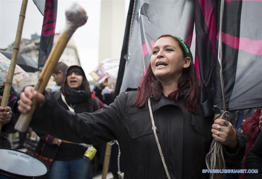 Una mujer participa durante el primer Paro Nacional de Mujeres y movilización bajo el título "Miércoles negro", en la ciudad de Buenos Aires, Argentina, el 19 de octubre de 2016. El colectivo "Ni Una Menos", Mujeres de la Matria Latinoamericana (MuMaLá) y otras organizaciones organizaron el miércoles el paro de mujeres y movilización bajo el título de "Miércoles negro" para decir basta a la violencia de género, convocando a las mujeres a vestirse de negro en se?al de luto, de acuerdo con información de la prensa local. (Xinhua/Martín Zabala)