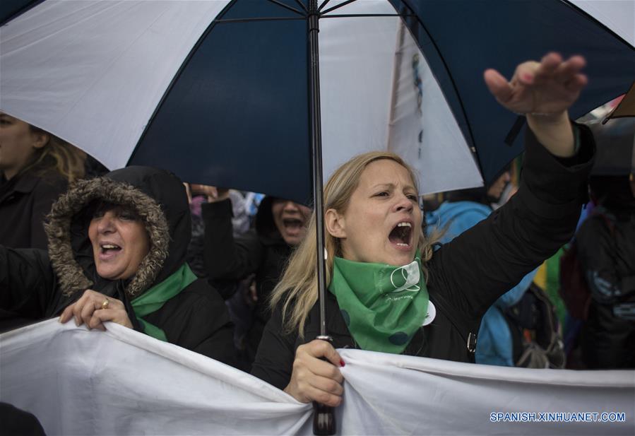 Mujeres participan durante el primer Paro Nacional de Mujeres y movilización bajo el título "Miércoles negro", en la ciudad de Buenos Aires, Argentina, el 19 de octubre de 2016. El colectivo "Ni Una Menos", Mujeres de la Matria Latinoamericana (MuMaLá) y otras organizaciones organizaron el miércoles el paro de mujeres y movilización bajo el título de "Miércoles negro" para decir basta a la violencia de género, convocando a las mujeres a vestirse de negro en se?al de luto, de acuerdo con información de la prensa local. (Xinhua/Martín Zabala)