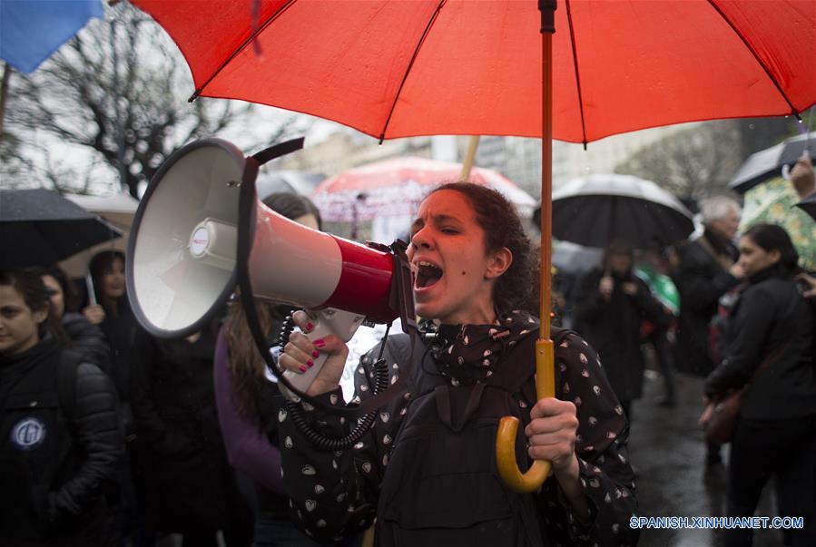 UENOS AIRES, octubre 19, 2016 (Xinhua) -- Una mujer grita consignas durante el primer Paro Nacional de Mujeres y movilización bajo el título "Miércoles negro", en la ciudad de Buenos Aires, Argentina, el 19 de octubre de 2016.