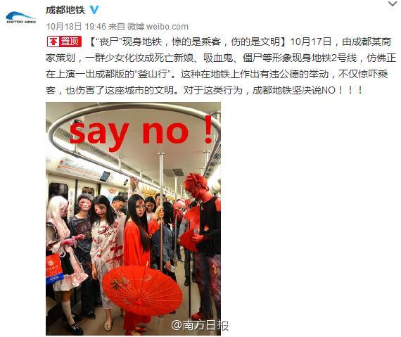 El metro de Chengdu dice “no” a los disfraces de Halloween (5)