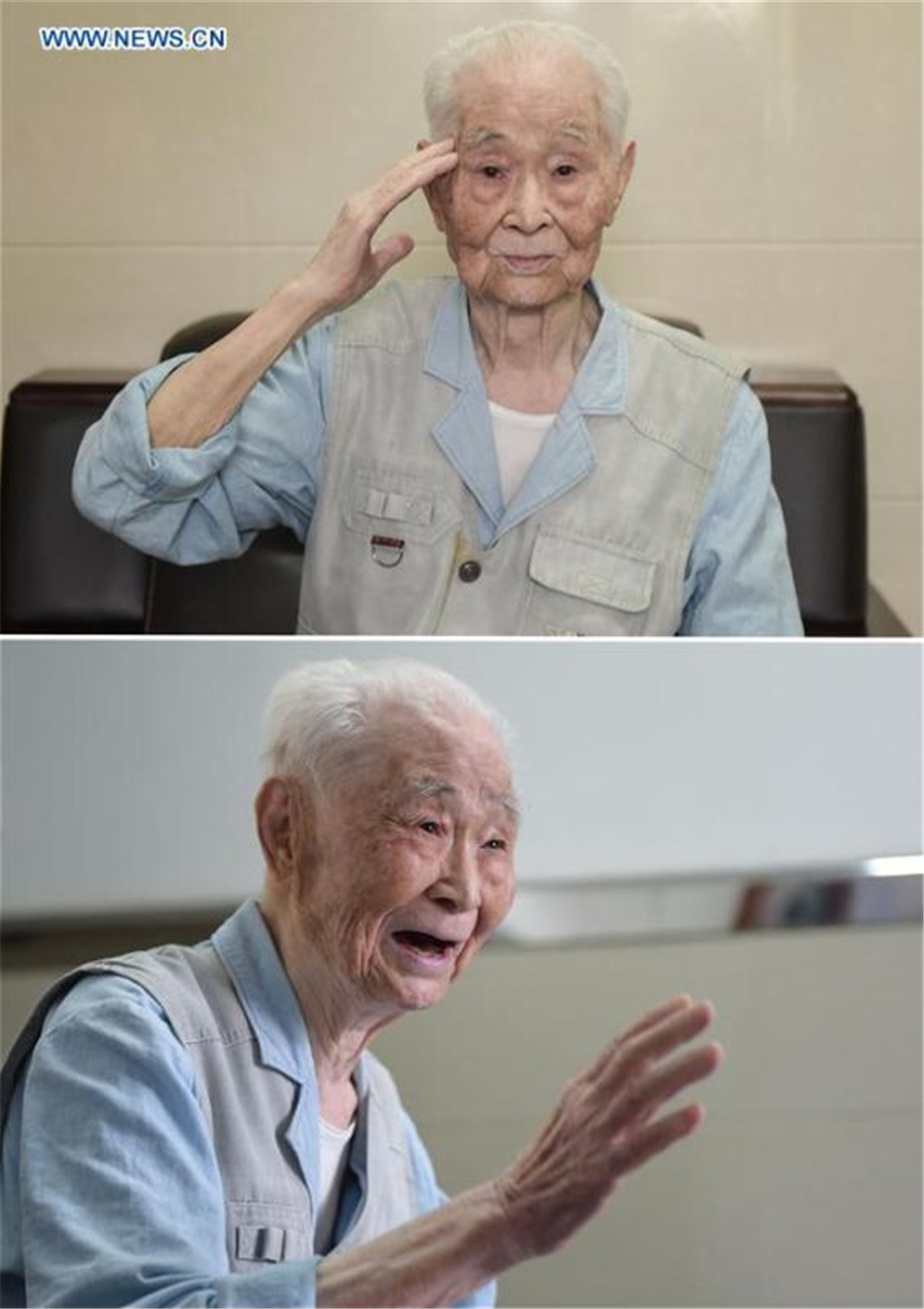 La foto tomada el 9 de septiembre del 2016 muestra a Fang Huai, de 97 a?os, veterano del Ejército Rojo. Este a?o se cumple el 80 aniversario de la victoria de la Gran Marcha. [Foto: Xinhua]