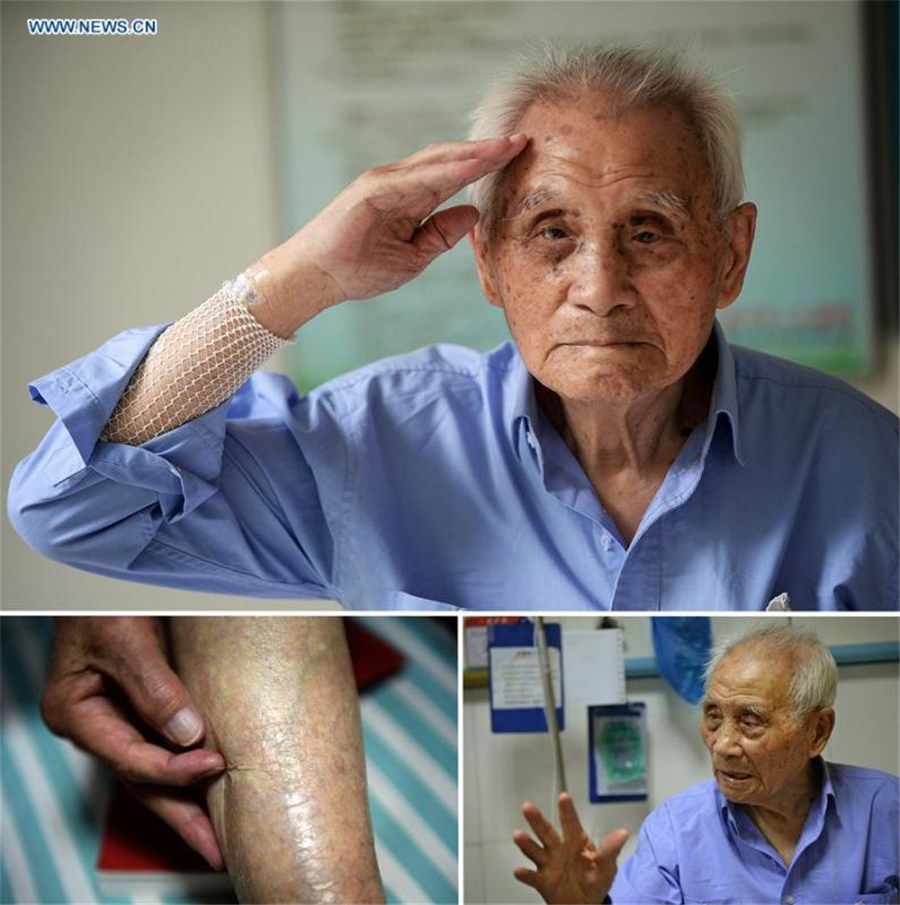 La foto tomada el 27 de mayo del 2016 muestra a Wang Chengdeng, de 102 a?os, veterano del Ejército Rojo. Este a?o se cumple el 80 aniversario de la victoria de la Gran Marcha. Wang ense?a una cicatriz de la época de la Gran Marcha. [Foto: Xinhua]