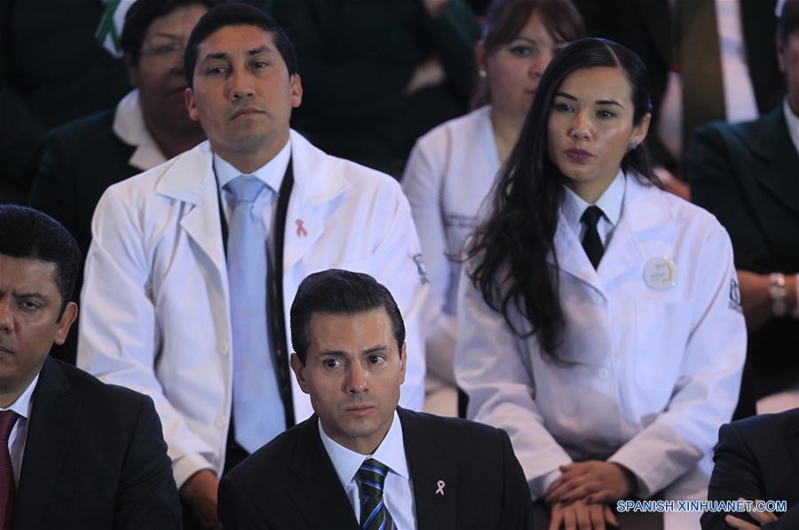 CIUDAD DE MEXICO, octubre 26, 2016 (Xinhua) -- El presidente de México, Enrique Pe?a Nieto (frente), asiste a la 107 Asamblea Ordinaria del Instituto Mexicano del Seguro Social (IMSS), en la Ciudad de México, capital de México, el 26 de octubre de 2016. En el evento, el presidente mexicano, Enrique Pe?a Nieto, renovó el compromiso del Gobierno de la República con el derecho a la salud y la seguridad social en México, de acuerdo con información de la prensa local. (Xinhua/Str)
