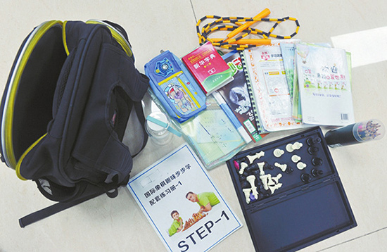 Un estudiante de segundo curso de primaria, Yuanyuan, tenía una mochila que pesaba 5,6 kilogramos, llena de libros de texto, cuadernos de ejercicios, libretas, artículos de papelería y un diccionario. Su padre, de apellido Yang, explicó que Yuanyuan asistía a cursos extracurriculares de ajedrez y fútbol. Los días en los que asiste a estos cursos, la mochila de Yuanyuan pesa más ya que tiene que llevar su tabla de ajedrez y un balón de fútbol.