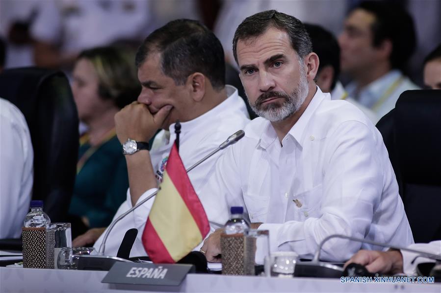 El rey de Espa?a, Don Felipe VI (d), asiste a la Instalación de la XXV Cumbre Iberoamericana de Jefes de Estado y de Gobierno, en Cartagena de Indias, Colombia, el 29 de octubre de 2016. El presidente de Colombia, Juan Manuel Santos, inauguró el sábado oficialmente la XXV Cumbre Iberoamericana de Jefes de Estado y de Gobierno en Cartagena de Indias, Colombia, en la cual los temas propuestos por el anfitrión fueron Juventud, Emprendimiento y Educación. (Xinhua/Jhon Paz)