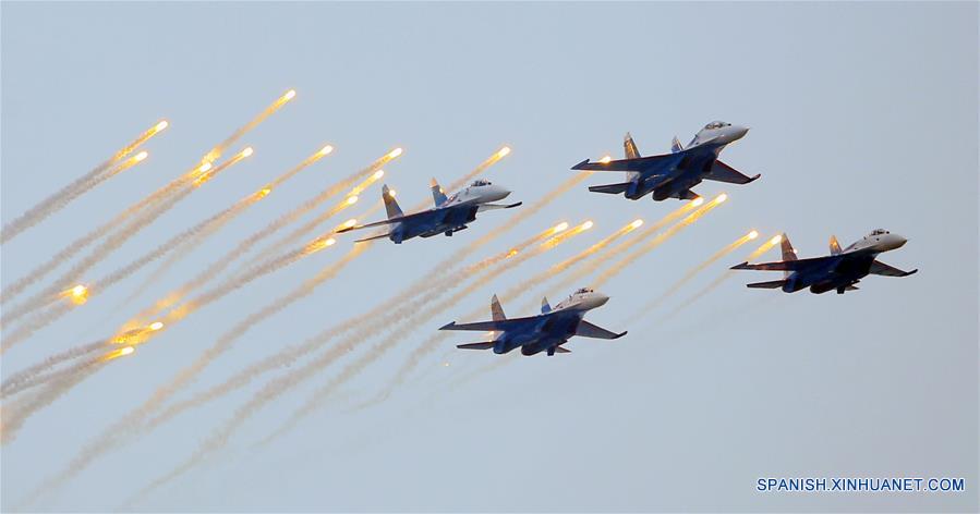 El equipo acrobático de Rusia participan en la XI Exhibición Internacional de Aviación y Aeroespacial de China, en Zhuhai, provincia de Guangdong, en el sur de China, el 2 de noviembre de 2016. (Xinhua/Cai Yang)