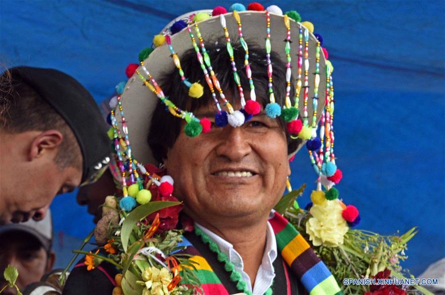 POTOSI, noviembre 8, 2016 (Xinhua) -- El presidente de Bolivia, Evo Morales, participa en el evento de entrega de tanques para el almacenamiento de agua de lluvia en la comunidad de Soratiri, municipio de Ocurí, en Potosí, Bolivia, el 8 de noviembre de 2016. De acuerdo con información de la prensa local, Morales entregó el martes alrededor de 800 tanques para recolectar agua pluvial en Soratiri. (Xinhua/Enzo De Luca/ABI)