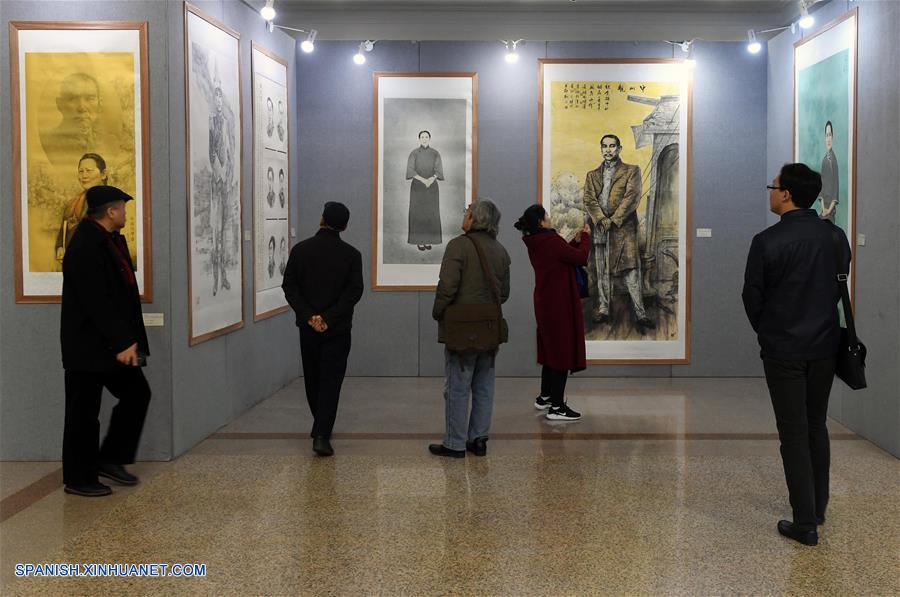 Personas visitan una exposición de pintura que conmemora el 105 aniversario del nacimiento de Sun Yat-sen, en el Palacio Cultural de las Nacionalidades, en Beijing, capital de China, el 8 de noviembre de 2016. La exposición de pintura comenzó el martes. (Xinhua/Chen Yehua)