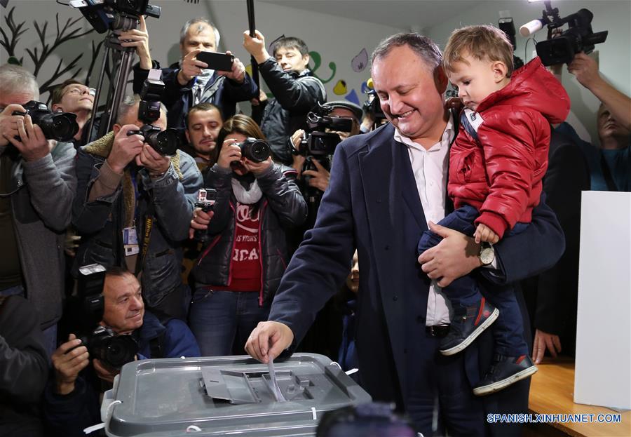 CHISINAU, 13 nov (Xinhua) -- El candidato socialista Igor Dodon encabeza la segunda vuelta presidencial realizada hoy en Moldavia con 55,03 por ciento de los votos, frente al 44,97 por ciento de su rival Maia Sandu, con el 97,21 por ciento de los votos contados, informó la Comisión Electoral Central de Moldavia.
