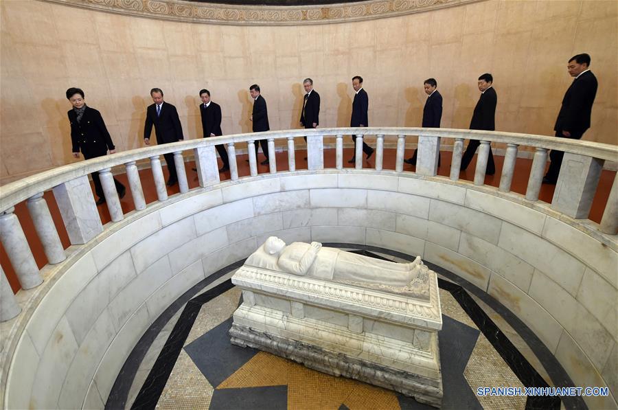 Delegados rinden tributo a Sun Yat-sen durante una ceremonia para conmemorar el 150 aniversario de su nacimiento en el Mausoleo de Sun Yat-sen, en Nanjing, capital de la provincia de Jiangsu, en el este de China, el 12 de noviembre de 2016. Nacido en 1866, Sun Yat-sen fue fundador del partido Kuomintang y un venerado líder revolucionario que desempe?ó un papel decisivo en el derrocamiento del gobierno imperial en China. (Xinhua/Sun Can)
