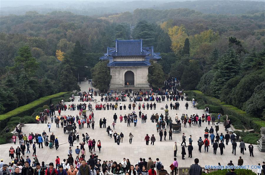 Personas visitan el Mausoleo de Sun Yat-sen, con motivo del aniversario 150 de su nacimiento, en Nanjing, capital de la provincia de Jiangsu, en el este de China, el 12 de noviembre de 2016. Nacido en 1866, Sun Yat-sen fue fundador del partido Kuomintang y un venerado líder revolucionario que desempe?ó un papel decisivo en el derrocamiento del gobierno imperial en China. (Xinhua/Sun Can)