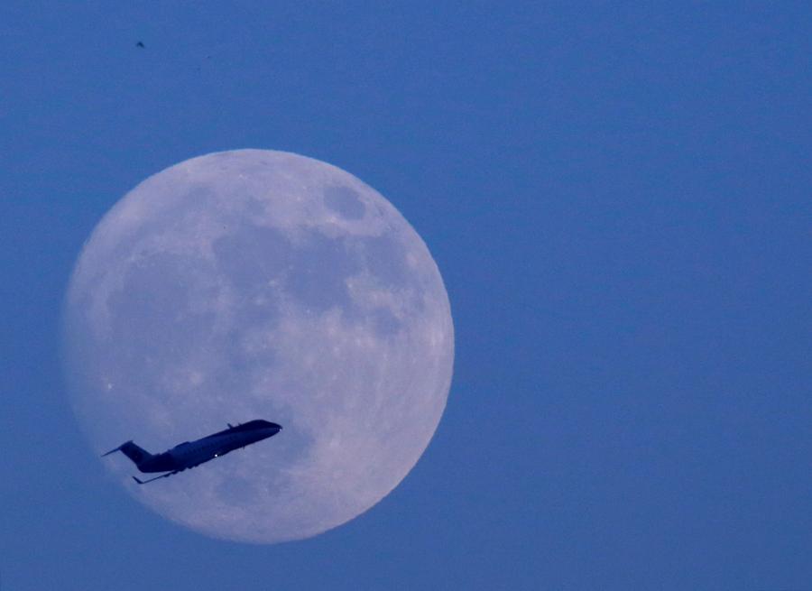 Un avión vuela con la “superluna” detrás en Katmandú, Nepal, el 13 de noviembre de 2016. [Foto/Agencias]