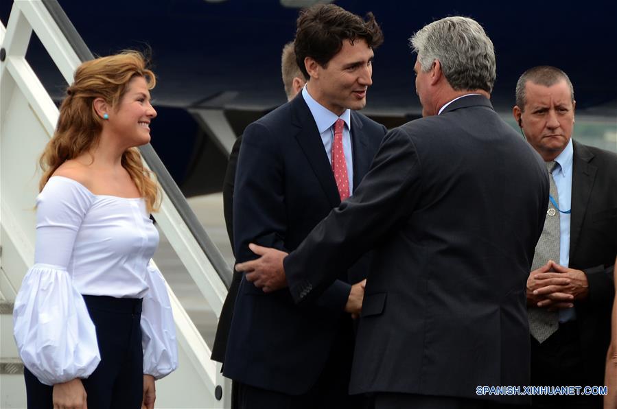 El primer ministro de Canadá, Justin Trudeau (2-i), estrecha la mano con el primer vicepresidente de los Consejos de Estado y de Ministros cubano, Miguel Díaz-Canel (2-d), durante su llegada a La Habana, Cuba, el 15 de noviembre de 2016. El primer ministro de Canadá, Justin Trudeau, llegó el martes a Cuba en visita oficial, con el propósito de dialogar con el presidente Raúl Castro y fortalecer las relaciones económicas y comerciales entre los dos países. (Xinhua/Joaquín Hernández)