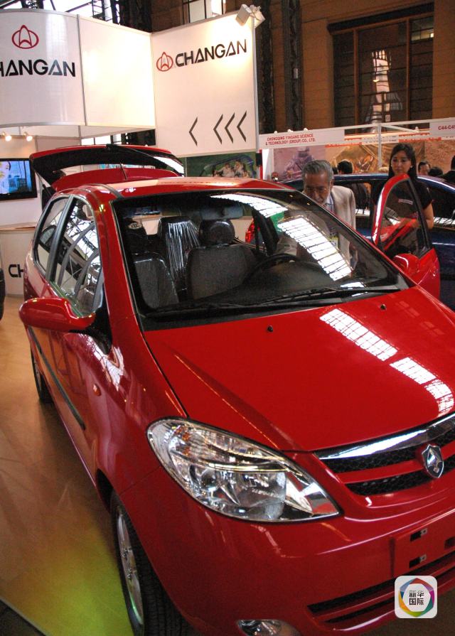 La foto muestra un coche de marca Changan está en exposición en la II Feria de Mercancía China celebrada en Santiago, capital de Chile el 6 de diciembre de 2007. (Xinhua/Zhao Kai)
