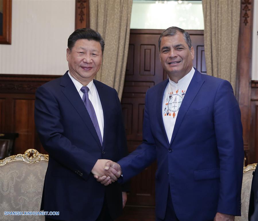 QUITO, noviembre 18, 2016 (Xinhua) -- El presidente de China, Xi Jinping, sostiene conversaciones con el presidente de Ecuador, Rafael Correa, en Quito, Ecuador, el 17 de noviembre de 2016. (Xinhua/Ju Peng)