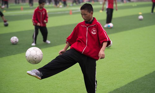 Estudiante de la Academia Tagou de Henan patea un balón de fútbol. (Foto: Archivo)