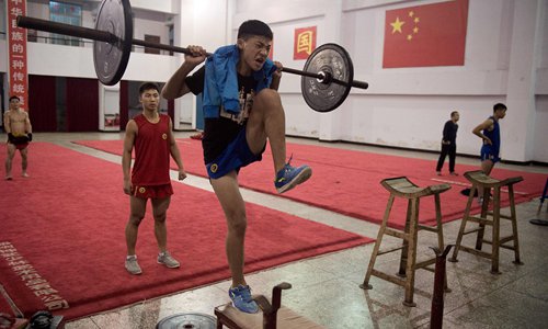 Estudiantes de la Academia Tagou de Henan levanta pesas. Esta escuela combina fútbol con Kung Fu. (Foto: Archivo)
